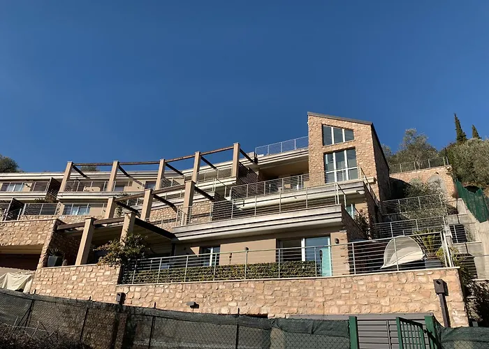 Overlooking the lake, the 65 m^2 Deluxe Sky Terrasse Design Apartment 180°Lake View is within a 10-minute drive of Via Valle delle Cartiere. Guests will enjoy access to luxurious amenities, such as an aqua park, a summer terrace, and a golf course.